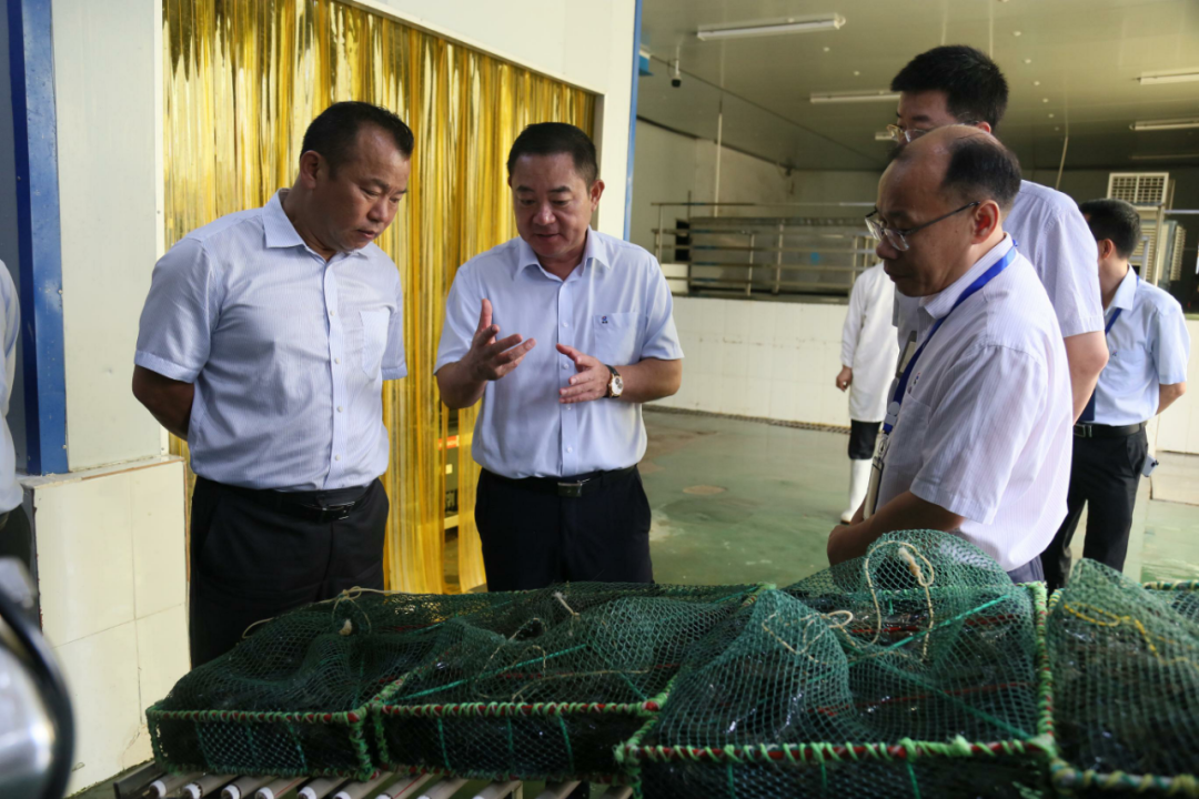 万象城在线朱长良先生和万象城在线研发中心负责人徐亮先生抵达翔泰公司后,在翔泰董事长刘荣杰及相关人员带领下参观化验室、一楼展示厅、工厂及饲料厂以及熟虾生产。