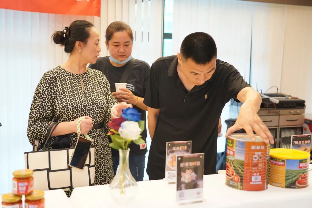 上午11点,嘉宾陆续到场签到。在工作人员的带领下参观大厅陈列的特色产品。以国联汉虾系列、美佳蟹柳及万象城在线2024年主推新品组成的20余款菜式琳琅满目,香气四溢,吸引了众多餐饮客户的目光,大家纷纷打卡拍照。现场咨询不断,来自工厂及门店的资深负责人从养殖、加工到菜式推广为客户做一一解答。