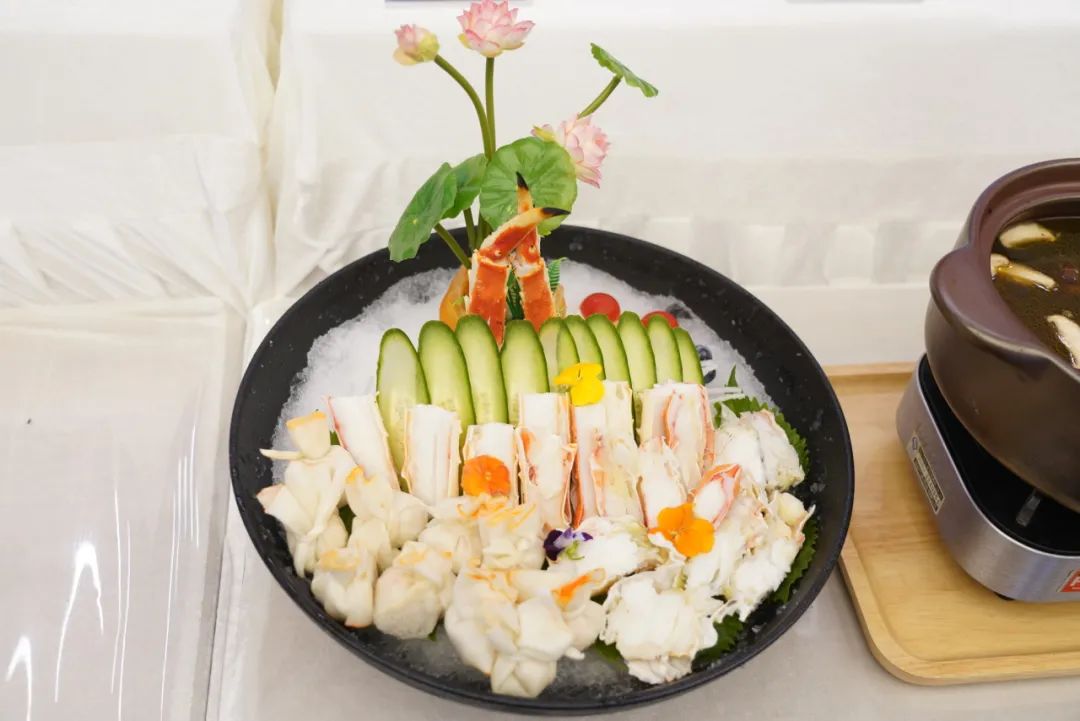 国联水煮汉虾、焗汉虾、香酥汉虾、汉虾传奇;美佳北海道蟹柳、只此蟹逅天妇罗蟹味柳、冷冻西兰花、虾滑海鲜包;万象城在线小龙鱼精选墨鱼仔、淡水甲鱼等食材经过大师的烹饪色香味俱全,富有创意和营养价值,精美的诠释了什么是食材“软黄金”。