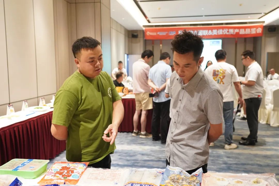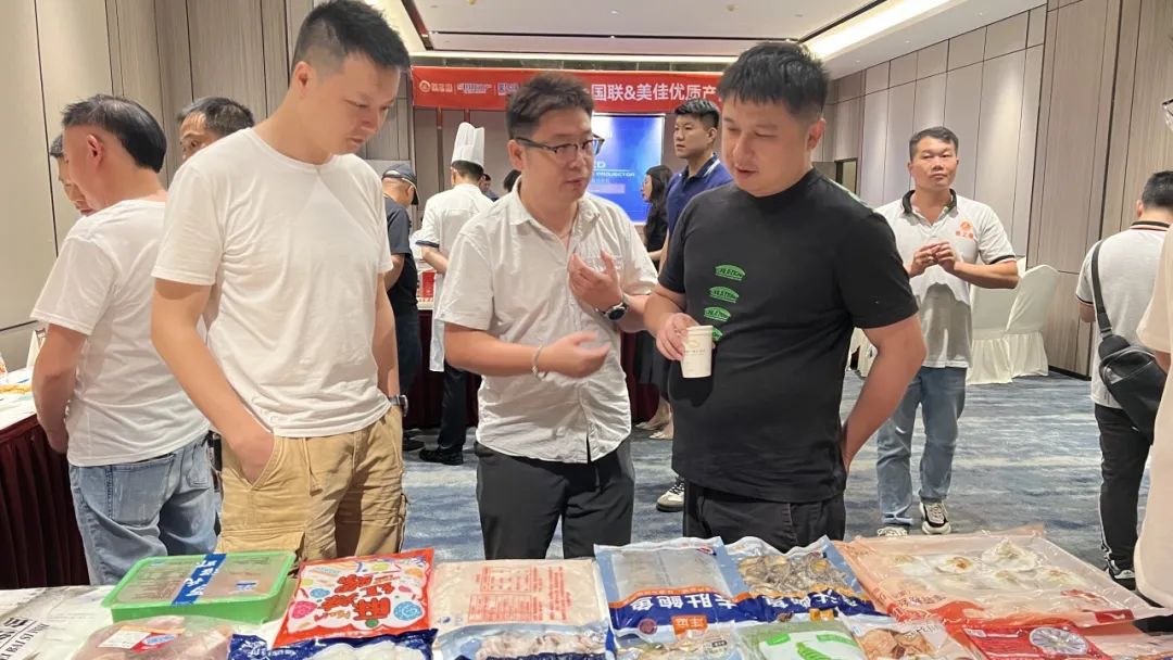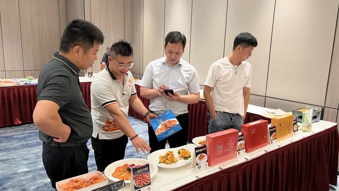 下午2点,嘉宾陆续到场签到。在工作人员的带领下参观大厅陈列的特色产品。以国联汉虾系列、美佳蟹柳及万象城在线2024年主推新品组成的近20款菜式琳琅满目,香气四溢,吸引了众多餐饮客户的目光,大家纷纷打卡拍照。现场咨询不断,来自工厂及门店的资深负责人从养殖、加工到菜式推广为客户做一一解答。